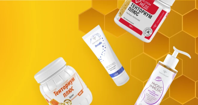 Продукт содержит густой экстракт прополиса, инновационный способ получения которого подтверждается патентом на изобретение.